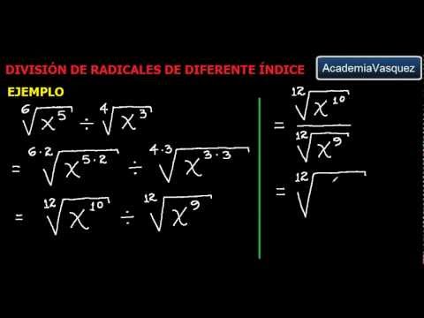 División de radicales de diferente índice